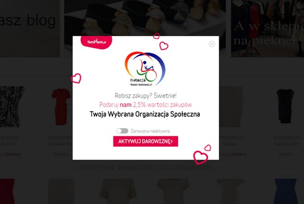 Wystarczy, że przed zakupami Aktywujesz Darowiznę (1 kliknięcie!), a określony na stronie procent darowizny trafi do NAS. W ten sposób każdy wygrywa - Ty masz produkt w tej samej cenie, Fundacja darowiznę, a sklep internetowy dzieląc się zyskiem zdobywa lojalnych klientów.